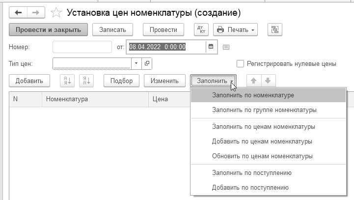 Установка цен номенклатуры")