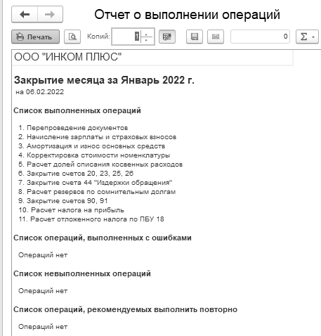 Рис. 17.1. Отчет о выполнении операций помощника "Закрытие месяца"