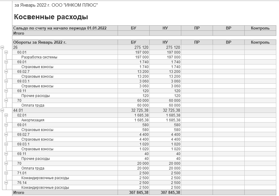 · косвенных расходов на сумму 307 845 руб.;