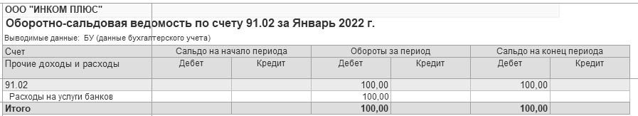 Сформируйте отчет "Оборотно-сальдовая ведомость" за январь 2022 года (рис. 17.2).