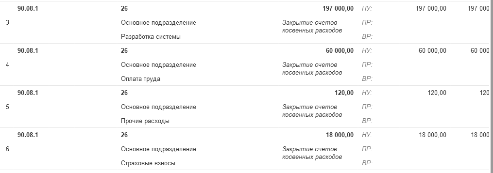 Проанализируйте бухгалтерские и налоговые записи документа "Регламентная операция" по виду операции "Закрытие счетов 20, 23, 25, 26".