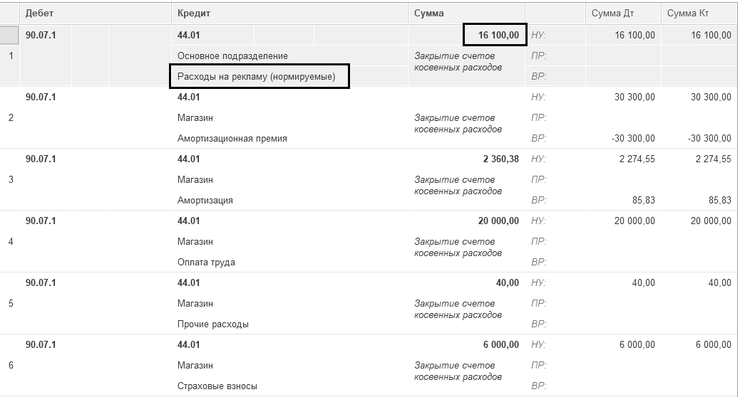 Определенный вид затрат на рекламу учитывается в составе прочих расходов только в пределах норм (не более 1% выручки от реализации (без НДС)), например,