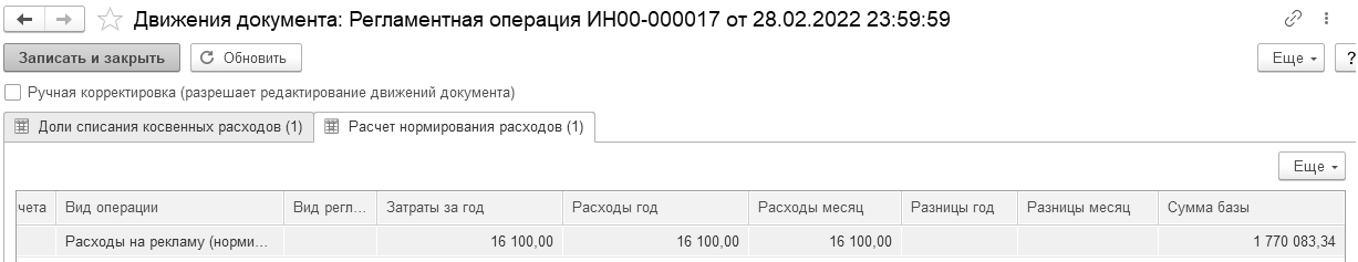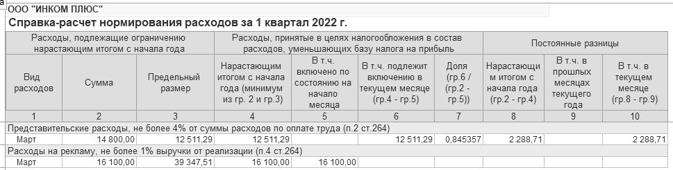 Рис. 20.1.5. Справка-расчет нормирования расходов за март. Представительские расходы