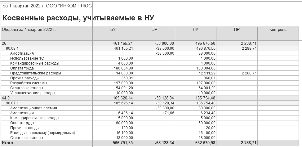 Рис. 20.1.8. Косвенные расходы, учитываемые в НУ, фрагмент отчета