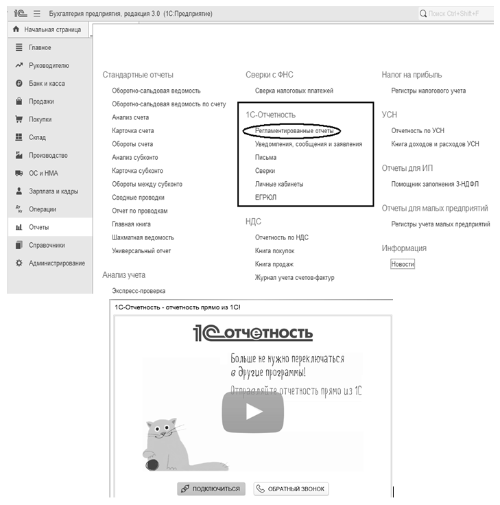 (меню "Панель разделов/Отчеты/Панель навигации/1С-Отчетность/