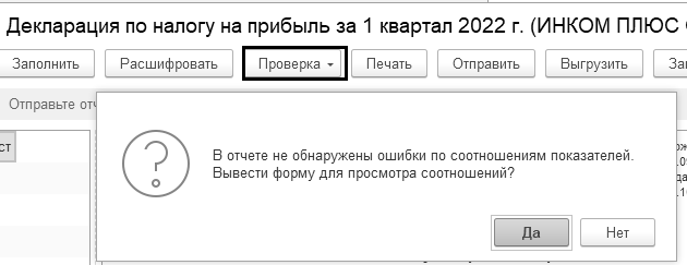 Рис. 22.1.16. Проверка отчета "Декларация по налогу на прибыль"