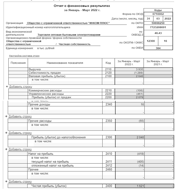 Заполните бухгалтерскую отчетность за I квартал 2022 года по ООО "ИНКОМ ПЛЮС".