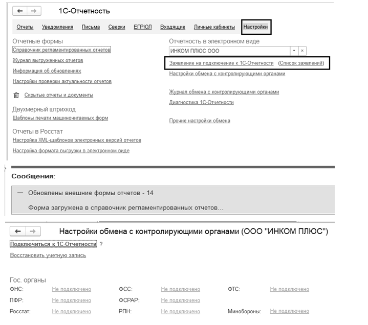 Рис. 22.1.4. Фрагмент формы рабочего места "1С-Отчетность"