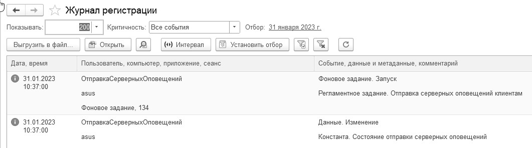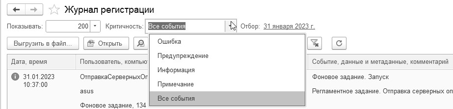 Для выполнения административных обязанностей часто требуется выяснить, какие события происходили в определенный момент времени, или какие действия выполнял тот или иной пользователь. Для этих целей предназначен журнал регистрации. В этом журнале могут фиксироваться различные события. В форме журнала регистрации в режиме использования программы отображаются события, которые можно только просмотреть.