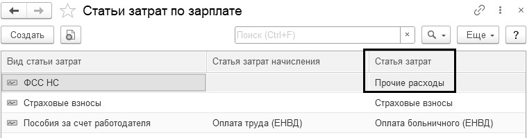 Следовательно, необходимо привести в соответствие и справочник "Статьи затрат по зарплате". В нем необходимо заменить статью затрат "Страховые взносы" на статью затрат "Прочие расходы".