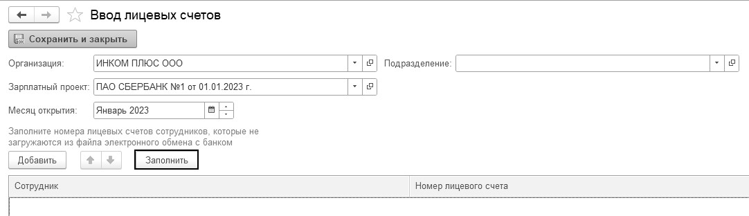 - открытие лицевых счетов вновь принятым сотрудникам, или сотрудникам, которые решили получать зарплату на карточки;