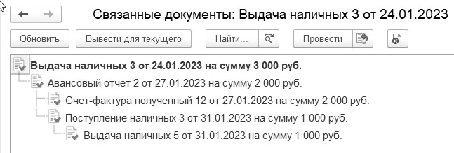 Рис. 6.1.12. Структура подчиненности документа "Выдача наличных"