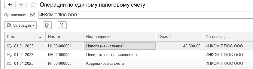 Рис. 7.2.8. Список документов "Операция по единому налоговому счету"