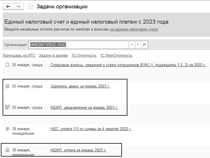 Рис. 7.2.12. Форма окна "Календарь бухгалтера ИТС"