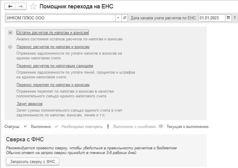 Рис. 7.2.4. Фрагмент формы окна помощника "Помощник перехода на ЕНС"