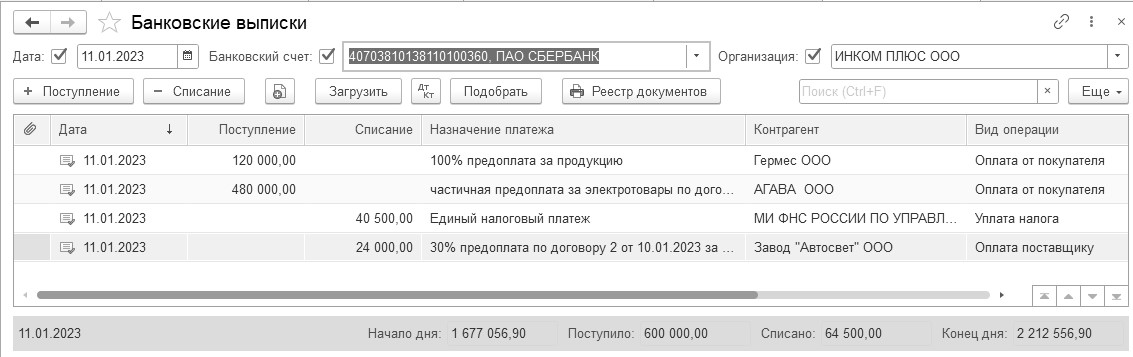 Рис. 7.3.2. Форма банковской выписки за 11.01.2023 года
