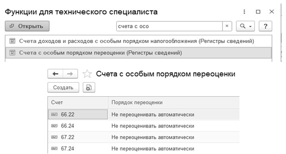 Рис. 7.4.1. Счета с особым порядком переоценки