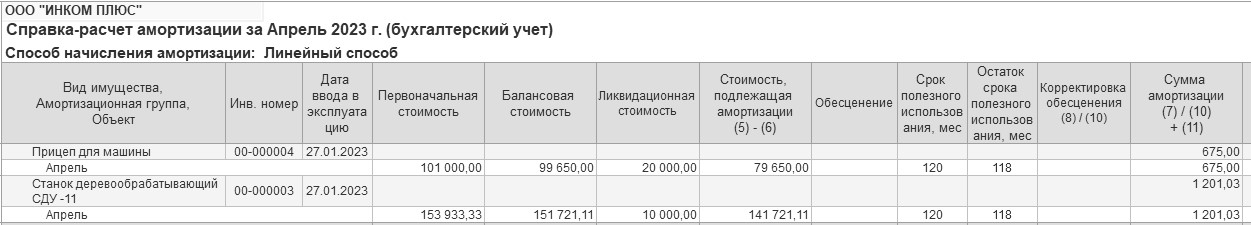 Рис. 9.6. 6. Форма окна отчета "Справка-расчет амортизации", апрель