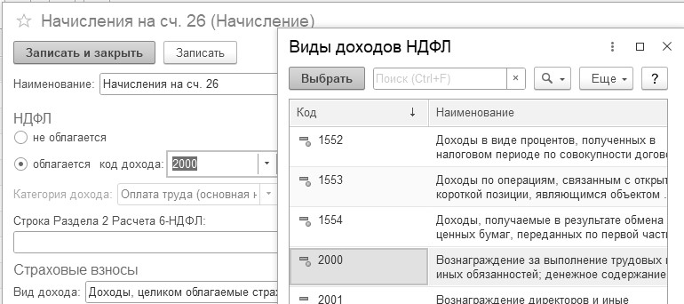 Назначение кода доходов по выплатам в адрес физлиц |