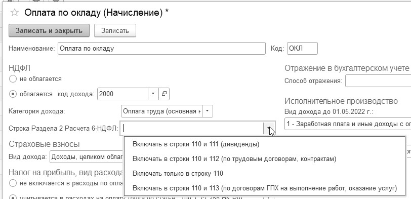 В данной форме выбирается категория дохода: оплата труда (основная налоговая база) или оплата труда при АУСН (основная налоговая база).
