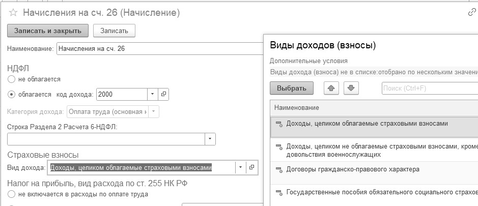 Страховые взносы – "Доходы, целиком облагаемые страховыми взносами";