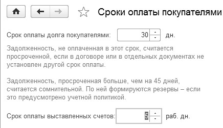 Рис. 1.4.14. Фрагмент формы "Параметры учета",гиперссылка "Сроки оплаты покупателями"
