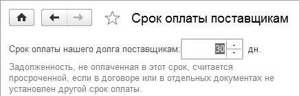 Рис. 1.4.16. Фрагмент формы "Параметры учета",гиперссылка "Срок оплаты поставщикам"