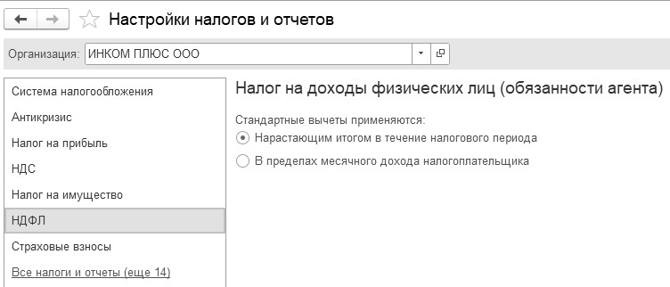 · Дополнительные настройки НДФЛ;