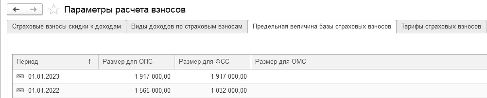 Рис. 1.4.6. Фрагмент формы окна "Параметры расчета взносов"