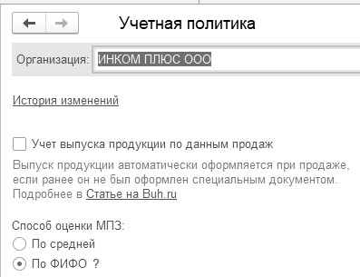 Настройка партионного учета влияет на реквизиты учетной политики. Денежное измерение стоимости запасов при выбытии должна быть ФИФО – первый пришел, первый и ушел. Фрагмент учетной политики представлен на рисунке 15.3.