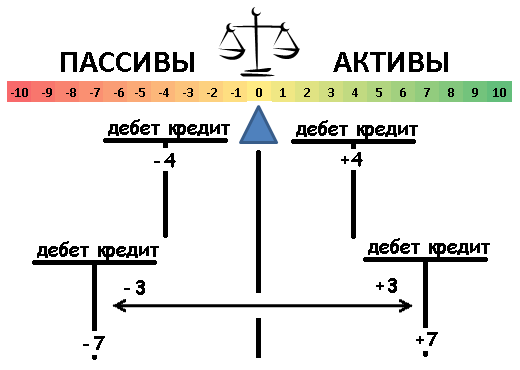 В тоже время, чтобы ПАССИВ с -7 стал равен -4, необходимо к -7 прибавить 3: