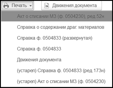 Печать Акта о списании материальных запасов