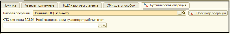 Для документа предусмотрена одна типовая операция: Принятие НДС к вычету.