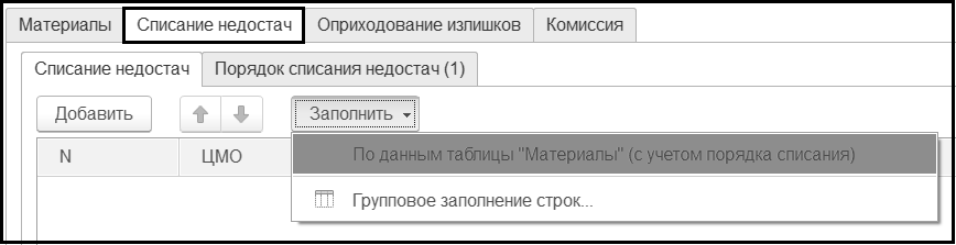В связи с этим на закладке Материалы в табличную часть документа добавлены поля: