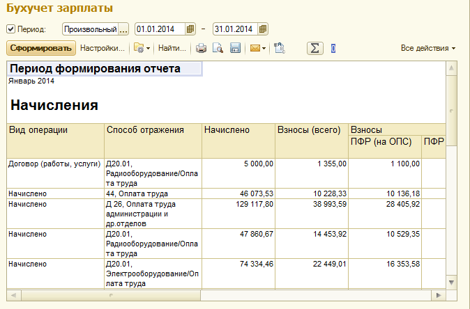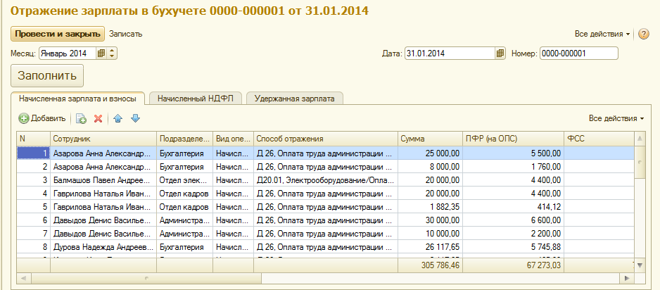Сформируем отражение зарплаты в учете за январь 2014 года