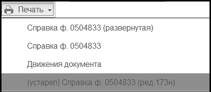 После заполнения и проведения документа можно сформировать бухгалтерскую справку (кнопка "Печать").