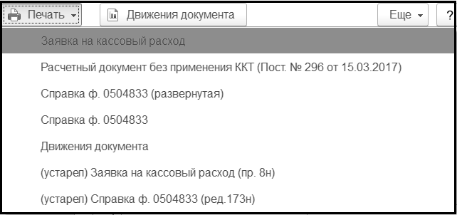 Документ "Заявка на кассовый расход"