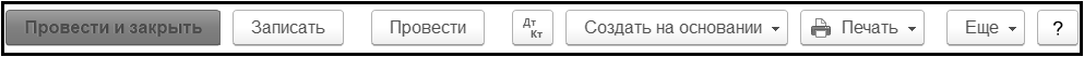 - Провести. Проводит документ, то есть формирует проводки и движения по регистрам.