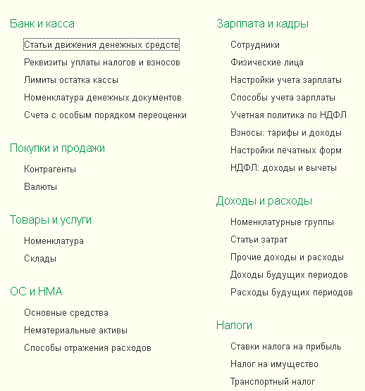 В разделе «Справочники» находятся прочие справочники, которые понадобятся для корректной работы системы: