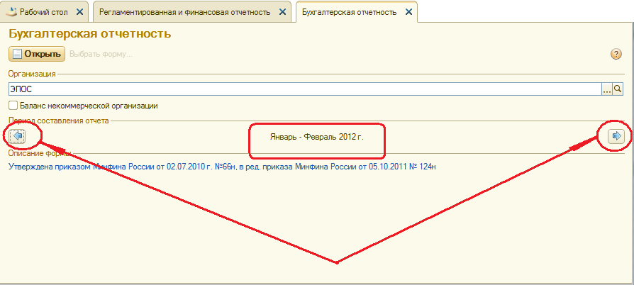 – в стартовой форме Бухгалтерская отчетность с помощью стрелок установить период формирования отчетности Январь-Февраль 2012 г. (рис. 15-21);