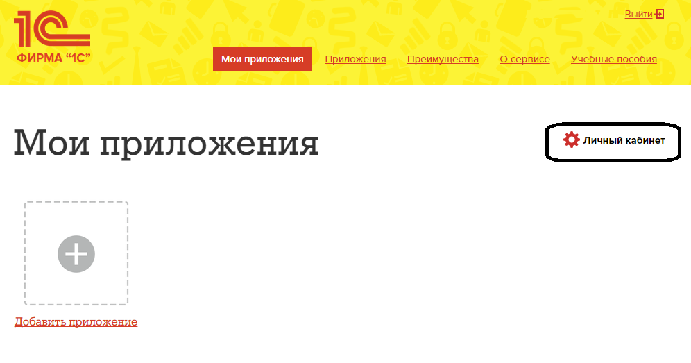После входа в сервис появляется список доступных приложений (который изначально пуст) и гиперссылка «Личный кабинет», которая позволяет перейти в режим администрирования.