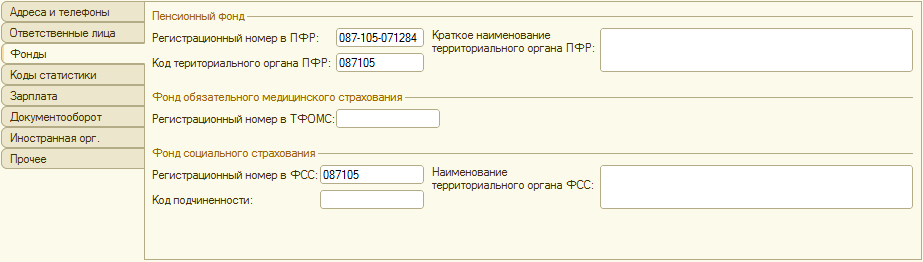 Рис. 2-10. Заполненная закладка Фонды в форме сведений о нашей организации