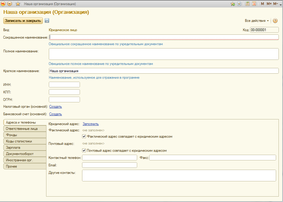 Рис. 2-4. Форма ввода сведений о нашей организации перед заполнением