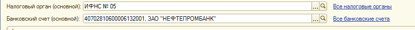 Рис. 2-7. Заполненные реквизиты Налоговый орган и Банковский счет