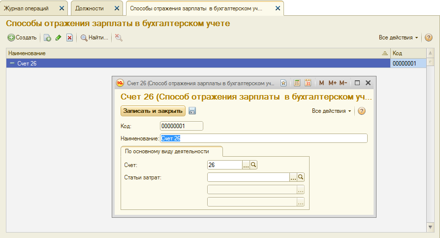 Описанную выше последовательность действий повторить для остальных способов отражения зарплаты (можно копированием с изменением отдельных значений).