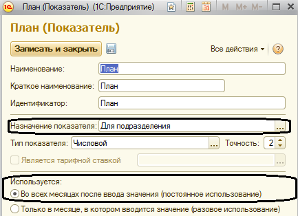 Назначение показателя – размер может быть задан для организации, подразделения, сотрудника.