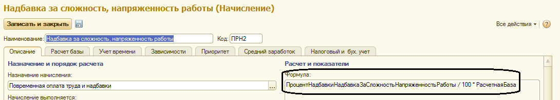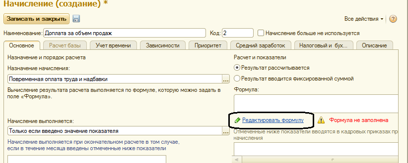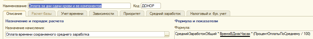 Выбор формулы расчета зависит от назначения начисления.
