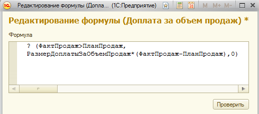 ?(ФактПродаж>ПланПродаж, РазмерДоплатыЗаОбъемПродаж*(ФактПродаж-ПланПродаж), 0)