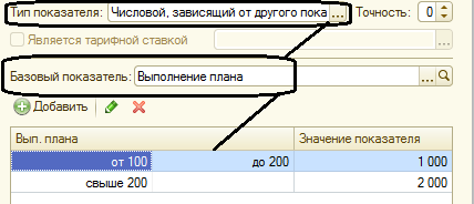 Числовой, зависящий от другого показателя – значение показателя по сути является шкалой. Шкала – это таблица из трех столбцов. В первых двух столбцах задается диапазон значений показателя, от которого зависит данный показатель (С ... По ...), а в третьей колонке задается результат (Размер). При такой настройке обязательно должен быть указан базовый показатель.