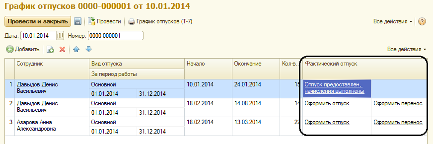 Документ "График отпусков" можно также назвать рабочим местом по планированию отпусков, поскольку: